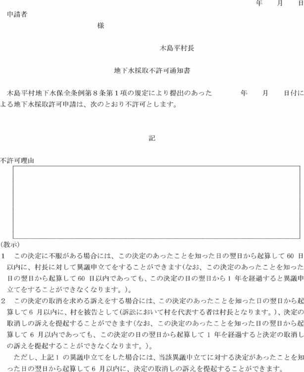2 条例第11条に規定する許可・不許可通知は、地下水採取許可通知書(様式第2号)及び地下水採取不許可通知書(様式第3号)によるものとする。