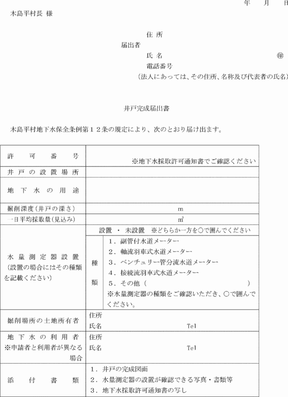 3 条例第12条に規定する届出は、井戸完成届出書(様式第4号)によるものとする。