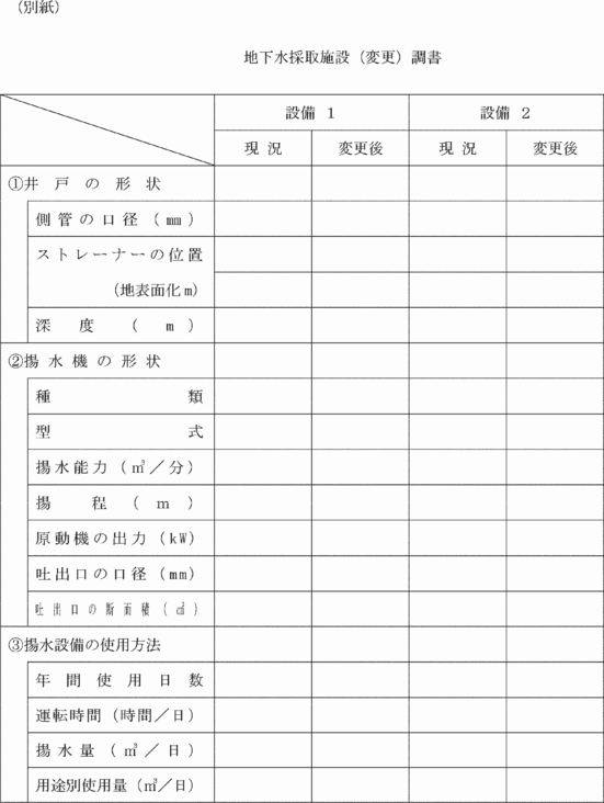 (1) 条例第7条に定める地下水の採取に係る許可基準の変更等
