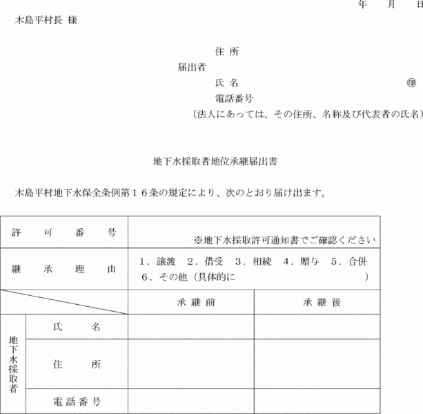 6 条例第16条に規定する届出は、地下水採取者地位承継届出書(様式第7号)によるものとする。