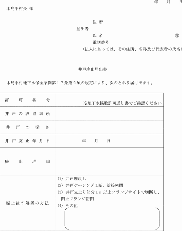 7 条例第17条第2項に規定する届出は、井戸廃止届出書(様式第8号)によるものとする。